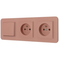 Włącznik podwójny i dwa gniazda pojedyncze z ramką zaokrągloną seria MINI kolor łososiowy
