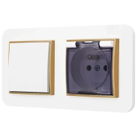 Dwa gniazda hermetyczne do łazienki z ramką zaokrągloną seria MINI kolor biały mat/złoty