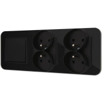 Trzy gniazda podwójne z ramką kwadratową efekt szkła seria ICON kolor czarny