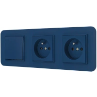 Włącznik podwójny i dwa gniazda podwójne z ramką zaokrągloną seria MINI kolor navy blue