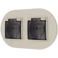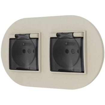 Włącznik podwójny i dwa gniazda hermetyczne z ramką okrągłą seria MINI kolor taupe