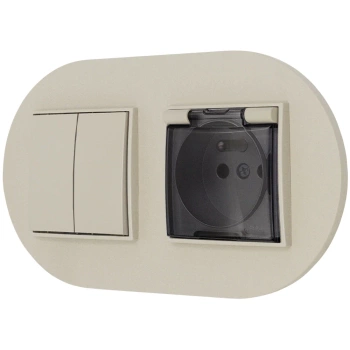 Włącznik podwójny z gniazdem hermetycznym z ramką zaokrągloną seria MINI kolor taupe