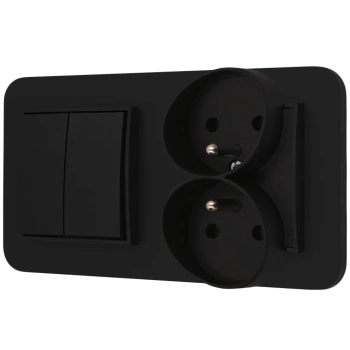 Włącznik podwójny i dwa gniazda pojedyncze z ramką zaokrągloną seria MINI kolor czarny