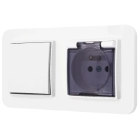Włącznik pojedynczy i dwa gniazda hermetyczne z ramką prostą seria MINI kolor biały mat
