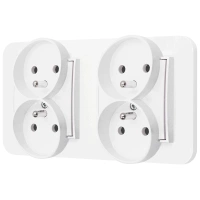 Włącznik podwójny i dwa gniazda podwójne z ramką zaokrągloną seria MINI kolor biały mat
