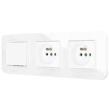 ( ilość produktów: 360 )Trzy gniazda pojedyncze z ramką zaokrągloną efekt szkła seria ICON kolor biały