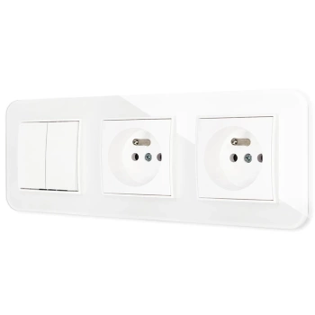 Trzy gniazda podwójne z ramką zaokrągloną efekt szkła seria ICON kolor biały