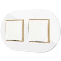 Dwa gniazda podwójne z ramką zaokrągloną efekt szkła seria ICON kolor biały/złoty