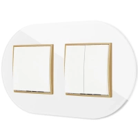 Dwa włączniki podwójne z ramką zaokrągloną efekt szkła seria ICON kolor biały/złoty