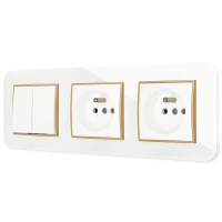 Dwa gniazda podwójne z ramką kwadratową efekt szkła seria ICON kolor biały/złoty