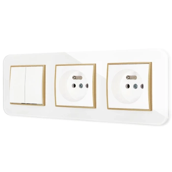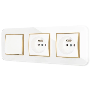 Trzy gniazda podwójne z ramką zaokrągloną efekt szkła seria ICON kolor biały/złoty