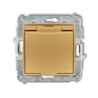Mechanizm gniazda bryzgoszczelnego z uziemieniem 2P+Z klapka złota, przesłony torów prądowych Karlik seria MINI 29MGPB-1zp kolor złoty