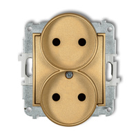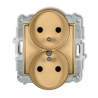 Mechanizm gniazda podwójnego do ramki z uziemieniem 2x2P+Z z przesłonami torów Karlik seria ICON 29IGPR-2zp kolor złoty