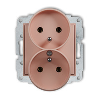 Mechanizm gniazda podwójnego do ramki z uziemieniem 2x2P+Z bez przesłon torów prądowych Karlik seria ICON 62IGPR-2z kolor łososiowy
