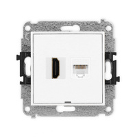 Mechanizm gniazda pojedynczego HDMI 2.0, 4K + gniazda komp. poj. 1xRJ45, kat. 5e, 8-stykowy, bez pola opisowego Karlik seria ICON IGHKBO-45e kolor biały
