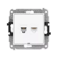 Mechanizm gniazda telefonicznego pojedynczego 1xRJ11 + komputerowego pojedynczego 1xRJ45, kat. 5e, 8-stykowy, beznarzędziowe, bez pola opisowego Karlik seria MINI 25MGTKBO kolor biały mat