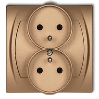 Gniazdo podwójne do ramki poziomej z uziemieniem 2x2P+Z z przesłonami torów Karlik seria LOGO 8LGPR-2zp kolor złoty metalik