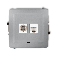 Mechanizm gniazda antenowego poj. typu F SAT + gniazda komp. poj. 1xRJ45, kat. 5e, 8-stykowy, bez pola opisowego Karlik seria DECO 7DGFKBO-1 kolor srebrny metalik