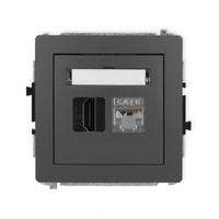 Mechanizm gniazda pojedynczego HDMI 2.0, 4K + gniazda komp. poj. 1xRJ45, kat. 6A, 8-stykowy, bez pola opisowego Karlik seria DECO 28DGHKBO-46A kolor grafitowy mat