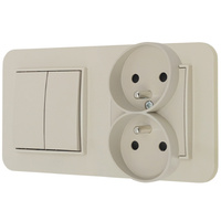 Włącznik podwójny i dwa gniazda pojedyncze z ramką zaokrągloną seria MINI kolor taupe