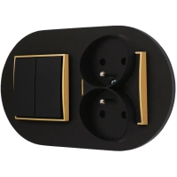 Włącznik podwójny i dwa gniazda pojedyncze z ramką okrągłą seria MINI kolor czarny złoty