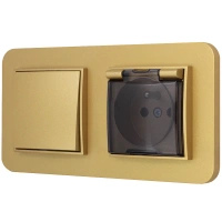 Włącznik podwójny z gniazdem hermetycznym z ramką zaokrągloną seria MINI kolor złoty