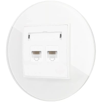 Gniazdo internetowe rj45 2x z ramką okrągłą efekt szkła seria ICON kolor biały