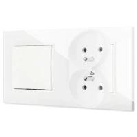 Włącznik podwójny w stylu USA ramka kwadratowa efekt szkła seria ICON kolor biały