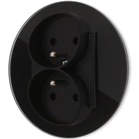Gniazdo podwójne z ramką okrągłą efekt szkła seria ICON kolor czarny