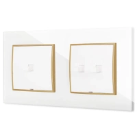 Włącznik podwójny z ramką okrągłą efekt szkła seria ICON kolor czarny/złoty