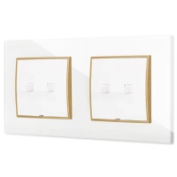 Dwa gniazda podwójne z ramką okrągłą efekt szkła seria ICON kolor czarny/złoty