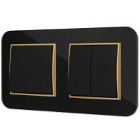 Dwa włączniki podwójne z ramką zaokrągloną efekt szkła seria ICON kolor czarny/złoty