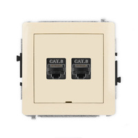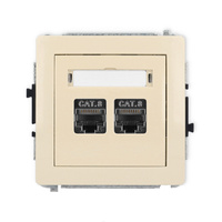 Mechanizm gniazda komputerowego podwójnego 2xRJ45, kat. 8, ekranowany, 8-stykowy, bez pola opisowego Karlik seria DECO 1DGKBO-12 kolor beżowy
