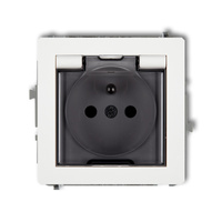 Mechanizm gniazda bryzgoszczelnego z uziemieniem SCHUKO 2P+Z klapka dymna, przesłony torów prądowych Karlik seria DECO DGPB-1sdp kolor biały
