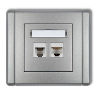 Gniazdo komputerowe podwójne 2xRJ45, kat. 6, 8-stykowe Karlik seria FLEXI 7FGK-4 kolor srebrny metalik
