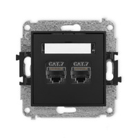Mechanizm gniazda komputerowego podwójnego 2xRJ45, kat. 7, ekranowany, 8-stykowy, bez pola opisowego Karlik seria ICON 12IGKBO-10 kolor czarny mat