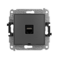 Mechanizm gniazda komputerowego pojedynczego 1xRJ45, kat. 8, ekranowany, 8-stykowy, bez pola opisowego Karlik seria ICON 28IGKBO-11 kolor grafitowy mat
