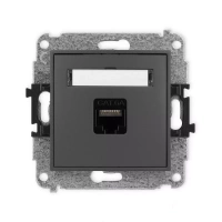 Mechanizm gniazda komputerowego pojedynczego 1xRJ45, kat. 7, ekranowany, 8-stykowy, bez pola opisowego Karlik seria ICON 28IGKBO-9 kolor grafitowy mat