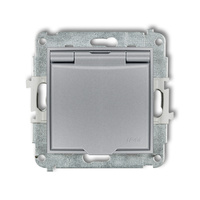 Mechanizm gniazda bryzgoszczelnego z uziemieniem 2P+Z klapka srebrny metalik, przesłony torów prądowych Karlik seria ICON 7IGPB-1zp kolor srebrny metalik