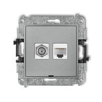 Mechanizm gniazda antenowego poj. typu F SAT + gniazda komp. poj. 1xRJ45, kat. 6 ekranowany, 8-stykowy, bez pola opisowego Karlik seria ICON 7IGFKBO-5 kolor srebrny metalik