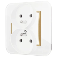 Gniazdo podwójne z ramką zaokrągloną efekt szkła seria ICON kolor biały/złoty