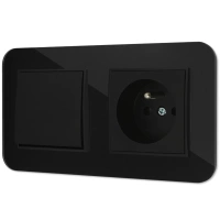 Włącznik podwójny w stylu USA ramka zaokrąglona efekt szkła seria ICON kolor czarny