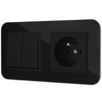 ( ilość produktów: 3552 )Dwa gniazda pojedyncze z ramką zaokrągloną efekt szkła seria ICON kolor czarny