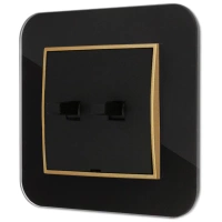 Włącznik podwójny z ramką kwadratową efekt szkła seria ICON kolor czarny/złoty