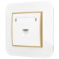 ( ilość produktów: 3552 )Gniazdo internetowe rj45 1x z ramką zaokrągloną efekt szkła seria ICON kolor biały/złoty