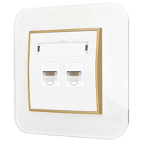 Gniazdo internetowe rj45 2x z ramką zaokrągloną efekt szkła seria ICON kolor biały/złoty