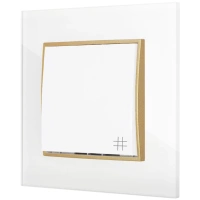 Gniazdo pojedyncze z ramką kwadratową efekt szkła seria ICON kolor biały/złoty