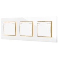 ( ilość produktów: 3552 )Trzy gniazda hermetyczne z ramką kwadratową efekt szkła seria ICON kolor biały/złoty