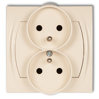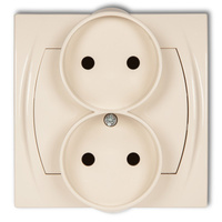 Gniazdo podwójne do ramki poziomej z uziemieniem 2x2P+Z z przesłonami torów Karlik seria LOGO 1LGPR-2zp kolor beżowy