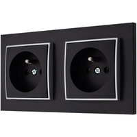 Dwa gniazda podwójne bezpieczne dla dzieci kolor czarny mat/srebrny 16